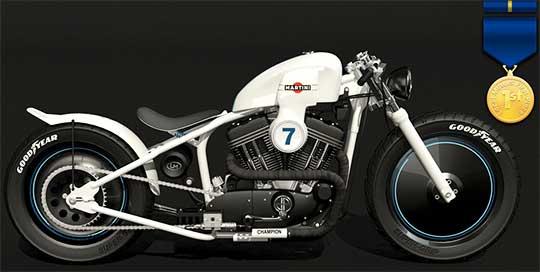 A Del Prado Brothers és a DP Customs közös projektjében különös módját választották a motorépítésnek. Tervezői versenyt hirdettek, amiben számítógéppel tervezett koncepciókkal lehetett nevezni a 2000 és 2003 közötti Sportsterek átépítésére.