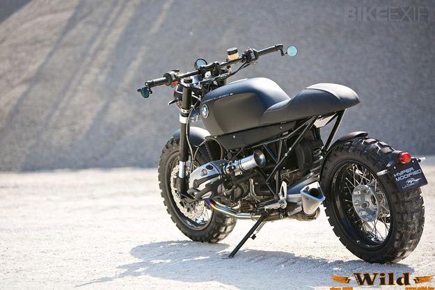 Az elmebaj sokféleképp ölthet testet, akár olyan járművekben is, mint egy Mini Cooper-ből épített pickup 3,5 literes blokkal, vagy egy V8-as Ferrari blokkal hajtott trike, esetleg egy Tron stílusú turbós FZR 1000. Ez a BMW 1200R a legújabb csoda, ami kigurult a francia műhelyből, és habár nekünk elég durván néz ki, Lazareth többi munkájához képest ez csak egy laza kormánycsere színvonalát üti meg. Az persze igaz, hogy mindössze a BMW blokk és a hátsó Paralever felfüggesztés maradt meg az eredeti motorból. Előre Yamaha YZF-R6 villái kerültek, természetesen kiszélesítve, hogy elférjen köztük a széles Continental Twinduro gumi. A létrejött stílust elég nehéz lenne behatárolni, így nevezzük mondjuk neo-retro-cafe-scramblernek.