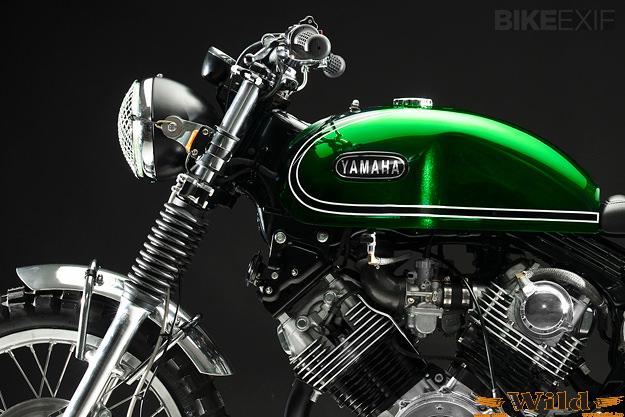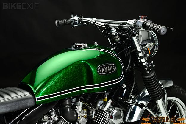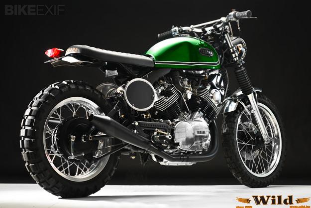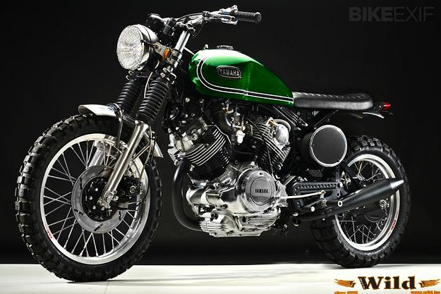 „ Egy amerikai farmon nőttem fel a ’70-es években, mindannyian Yamaha DT és Honda XL motorokat hajtottunk. Ezzel jártunk ki a csordát ellenőrizni, tehenet fejni, ha meg eljött a hétvége, lecseréltük a büdös gumicsizmát, lemostuk a motort és bementünk vele a városba." - mesélte Greg. Az 1982-es Yamaha XV920 egyetlen előnye, hogy bivalyerős, viszont rengeteg munka volt vele. A blokkot 1000 cm3-re növelték, biztos ami biztos, és az XV1000 TR1 első villáját kapta. Előre 19-es kerék került, hátul pedig maradt a gyári. A segédváz Greg saját keze munkáját dicséri, és természetesen úgy lett kialakítva, hogy a scramblerekre jellemző lapos üléshez illeszkedjen. Ugye mennyivel szebb, mint a nálunk elterjedt kormányhínárral megbolondított változatok !?