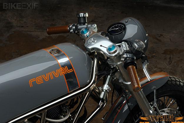 A Revival Cyclesnél pedig beindult a gépezet, új lábtartó és keskenyebb segédváz készült, amin 12 cm-el hátrébb került az ülés. A lavinát azonban már nem lehetett megállítani mert, ehhez új alumínium tank kellett, és végül az egész motor teljesen át lett alakítva. A váz és a lengőkar nikkelezett, a felnik szénszálasak, a kiflik egyedileg CNC-vel készültek, a kipufogó önmagában egy iparművészeti alkotás. A végeredmény magáért beszél az pedig külön jó hogy most már kevésbé gyúlékony.