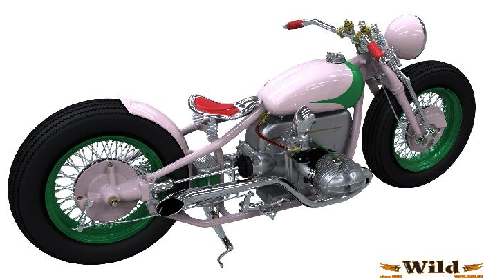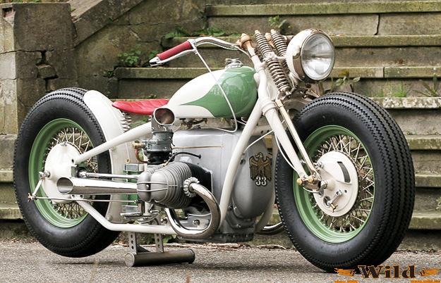 Az 1976-os BMW R90/S mindössze tíz évig élvezhette a gyári létformát, majd egy baleset alkalmával egy csatornában kötött ki. A holland táj jellegzetességeit ismerve ez annyira nem is meglepő, hisz’ ami nem közút vagy épület az csakis vízfelület lehet. Ekkor vásárolta meg Mark, de addigra már saját ökoszisztémával rendelkezett a blokkház, komoly flóra és fauna telepedett meg a több liter csatornavízzel teli erőműben. A régi vázból szinte csak a nyak maradt meg, a többit Mark és az ő jobb keze, Aad készítették. Előre egy H-D springer került, de alaposan megkurtítva, hogy a sárga földig ültetett váz továbbra is olyan mélyen maradhasson mint a magyar foci a hollandok ellen...