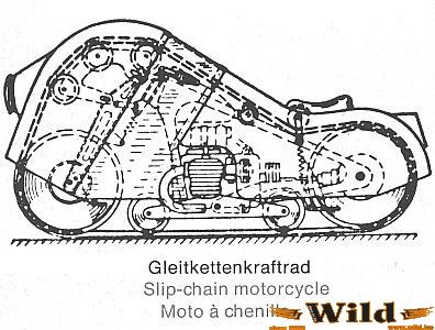 Az elmebetegségi mutatók nagyjából az NSU Kettenkrad szintjén mozogtak annál, aki ezt kifejlesztette. A lánctalp a rendes kerekeken fut, ahol a hátsó kerék egy hatalmas lánckerék formájában biztosítja a meghajtást. Az első keréknél aztán visszafordul és átmegy a kormány fölött, majd elfoglalja a tank helyét és végül az ülés alatt tér vissza. Elsőre azt hinnénk, hogy a fordulóköre valahol egy dízelmozdony és egy óceánjáró hajó közt van, mivel csak egy lánctalppal rendelkezik. A két kerék közt egy négygörgős szerkezettel azonban ívet lehet varázsolni a lánctalpnak, aminek segítségével már közepesen nagy küzdelem árán esetleg be lehetett venni vele egy kanyart.