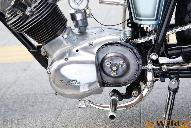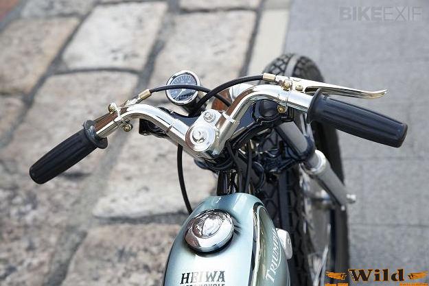 A hatvanas években gyártott 199 köbcentis Triumph Tiger Cub T20 nem egy tucat motor, viszont nagyon kedvelt volt a tanuló motorosok körében. Döntött hengere és királytengelyes vezérlése elég egyedivé teszi, de a Heiwa-nál továbbmentek. A gyári váz egy része megmaradt, de azon kívül mindent megváltoztattak. Érdekes megfigyelni az alumínium kipufogó zárókupakját vagy például azt, ahogy a rugóstag és a váz első csöve tökéletesen párhuzamos.