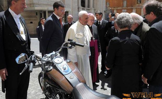 Február elején Párizsban árverezik el Ferenc pápa Harley-Davidsonját, amelyet a katolikus egyház vezetője jótékony célra ajánlott fel. A 12-15 ezer eurót érő Dyna Super Glide modellt február 6-án, a Grand Palais párizsi kiállítási csarnokban árverezik el. A motort 2013 júniusában, a márka 110. évfordulója alkalmából kapta ajándékba a katolikus egyházfő, novemberben egy külön szertartás keretében ráírta a nevét az üzemanyagtartályra. A motorkerékpáron kívül elárvereznek a párizsi aukción egy Harley-Davidson bőrdzsekit is, amelyet szintén aláírt a pápa.