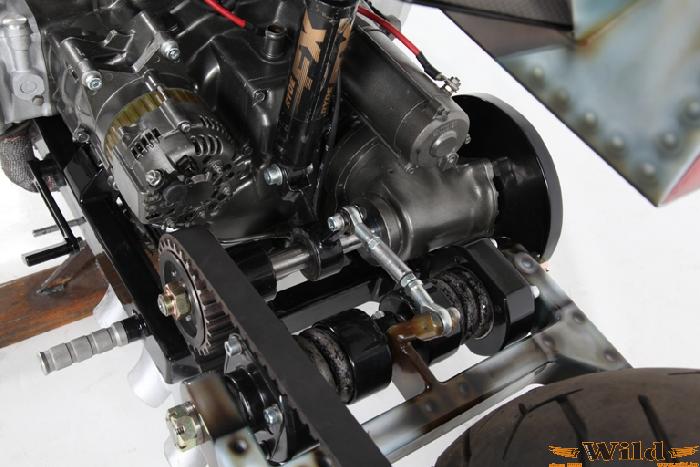 A stílus behatárolhatatlan, a látvány pedig feldolgozhatatlan. Az építési alap egy Honda GL 1500 Goldwing blokkja volt, de semmi egyéb nem állt rendelkezésre. A cél nem is lehetett volna más, mint az eredetileg 400 kilós óriáscirkáló reciprokát, ha úgy tetszik inverzét létrehozni. Ez olyan jól sikerült, hogy a motor központi része a hathengeres erőforrás lett, ehhez csatlakoznak a használathoz elengedhetetlen elemek. A kormány ötlete minden kétséget kizáróan a Lipótmezőről származik, ugyanis fel-le irányba használható, mint egy autó szarvkormánya. Az egész mechanikát egy kardáncsuklóra bízták, ami a haladás irányában elhelyezett kormánytengely forgását a villa tengelyére viszi át…