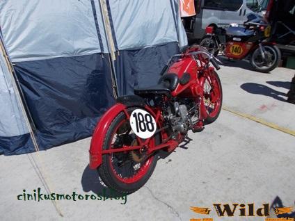 A pályán épp az „ifjak” edzettek. Azaz a ’70-es évektől ’83-ig terjedő időszakban született –elsősorban- japán gépek. Ez a csoport nem hoz minket lázba, így inkább a boxokban bóklásztunk. Később a pályán már a vintage kategóriások is képviseltetik magukat a –még nem időmérő – edzőkörökön, így őket bámulom a szerintem legizgalmasabb és a plebsz számára is relatív közelről látható kanyarban. Szórakoztató, de korántsem nevetséges látni, ahogy a lóerők hiányát pótolandó, a markolatot körbe csavarva, szinte lábbal segítve próbál a kanyarból kijőve az egyenesen a maximumnál is többet kihozni öreg gépéből a versenyző. Vannak nagyon bátrak és szerencsések is, akik a kavicságyból pattannak vissza sértetlenül, és látok patent, kanyarban előzést is.