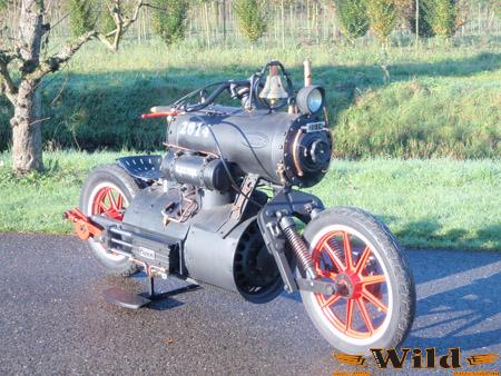 A szerkezet a november 7-8-án megrendezett holland Big Twin Expo-n debütált. Egy gőzmozdony és egy motor szerelméből született torz utód, aminek súlyát jobb nem találgatni. A vezetési komfort értelmezhetetlen fogalom lehet, hiszen a centi vastag nyomásálló gőztér másfél méteres magasságban gondoskodik a súlypont minél magasabbi helyzetéről. Kolomp, nyomásmérő órák erdeje, és ecsettel fújt fekete szín...minden megvan ami egy mozdonyra kell.