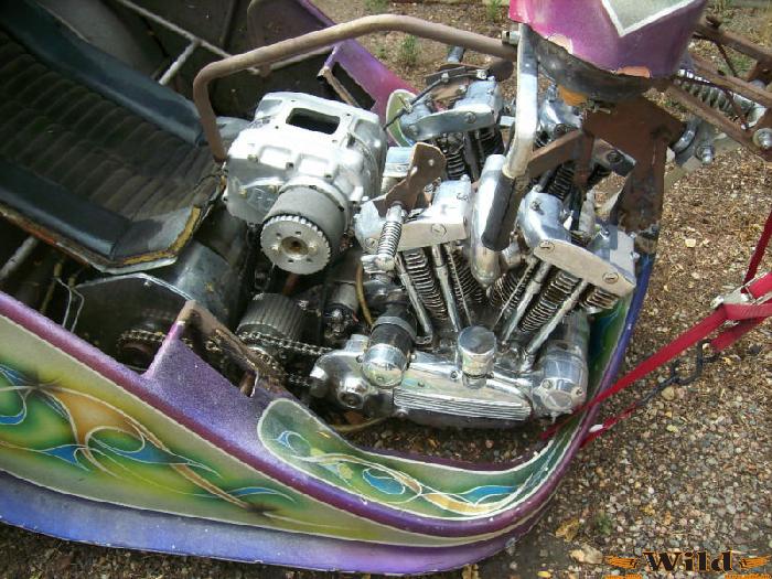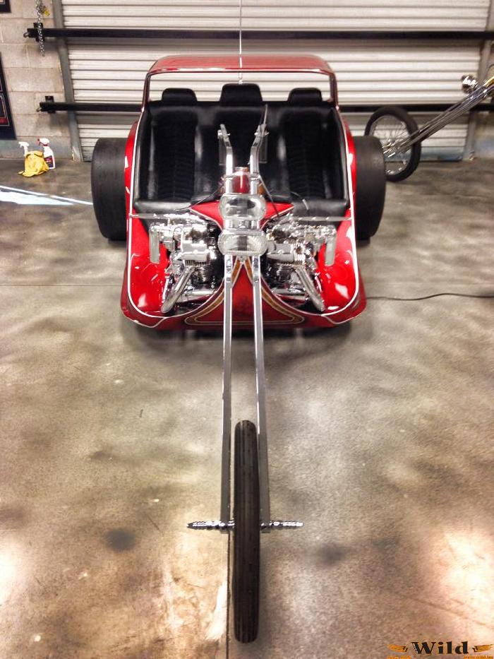 Tom McMullen 1969-es építése Kaliforniában született, és két vadonatúj 900-as Sportster blokk hajtotta. A saját műhelyének, az AEE Choppersnek az 5 keréken guruló reklámmotorja volt ez, amit viccesen Big Twin névre keresztelt, mert ugyan csak Sportster blokkok kerültek bele, de abból mindjárt kettő is. Ezt még megfejelte egy kompresszorral, egy Ford C4 váltóval és irdatlan széles hátsó kerekekkel. Tom barátunk nyilván nem járt fizika órára és a gördülési ellenállás fogalma számára semmit nem jelentett, de a teljesítményből bizonyára jókora darabot harapott ki. Persze az idők változnak, a trike kézről kézre járt és végül majdnem az enyészeté lett. 2011-ben az Ebayen árulták nevetséges összegért szétbuherálva, ekkor vette meg mostani gazdája, aki helyreállította az eredeti állapotába.
