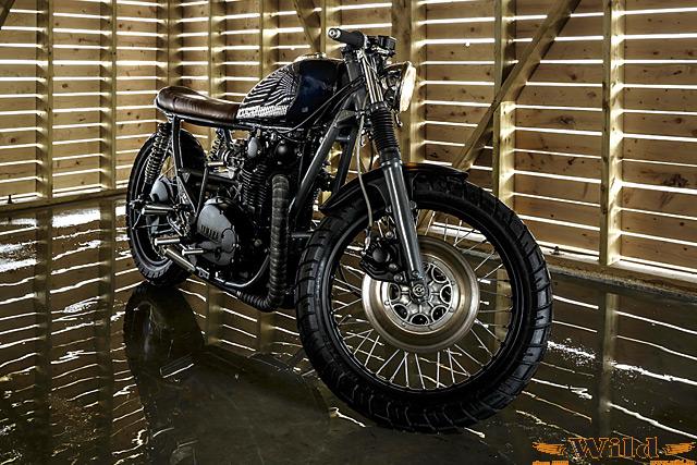 A legnagyobb dobás az XS650 tankja, ami kék színt kapott, jól kiemelve a KickMoto fehér matricáját. Egy tökéletes állapotban lévő tanksapkát találni elég nehéz, mivel az utángyártottak nem olyan jók, és ez a motor megkövetelte a legjobb megoldásokat. Az első és hátsó lökhárítók a lehető legkisebbre lettek alakítva, és matt fekete színt kaptak, ezzel abszolút illeszkedve a KickMototól már jól ismert tiszta vonalakhoz. A legnagyobb büszkeségük ebben az építésben az ülés, és láthatjuk is, hogy miért: a minőségi bőrdíszműves munka egyben kényelmes és stílusos nyerget eredményezett.