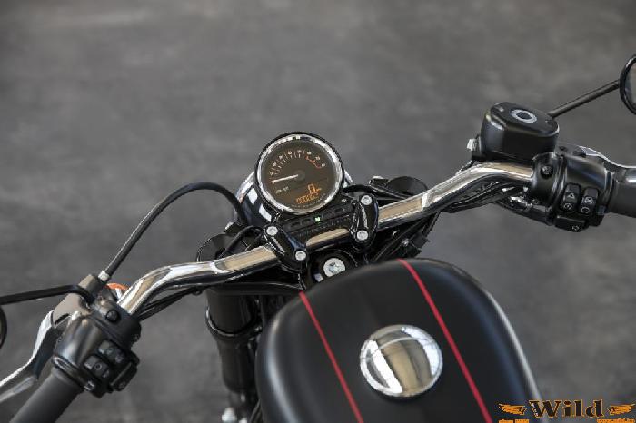 Az új ültetett kormány és a középre szerelt lábtartók révén a motorost harcias testtartásba helyezi, és a súlyát a klasszikus vonalvezetésű, 12,5 literes Sportster üzemanyagtartályra összpontosítja.