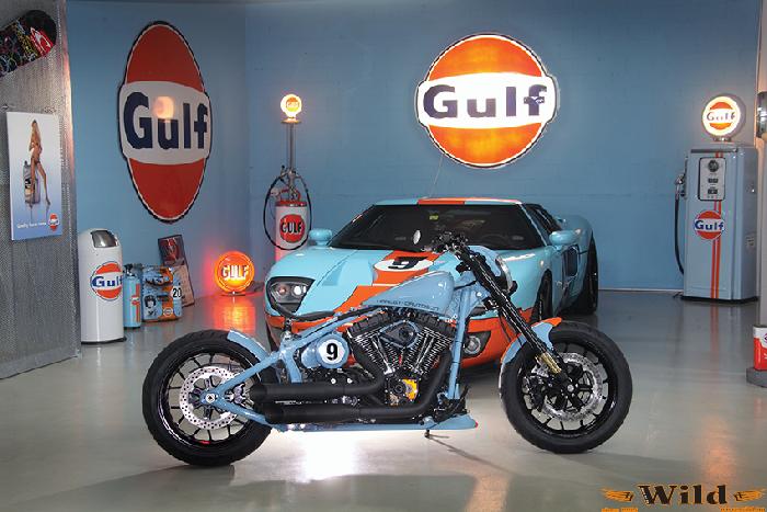 "1966 és 1969 között mindig Ford GT40-esek nyerték a bajnokságot, olyan pilótákkal a volán mögött, mint Pedro Rodriguez vagy Jacky Ickx. Lee H. Katzin ebből a témából Steve McQueen főszereplésével készített filmet, egyszerűen csak „Le Mans” címmel… amely ugyan egy Porsche és egy Ferrari pilótáinak versengéséről szól, de a témánkat képező kék/narancssárga színű Ford versenyautó ismertsége is innen származik. McQueen-nek ugyanis volt egy GT40-ese, melyet felhasználtak a forgatáshoz. A Harley Heaven stábja ennek a Fordnak, és abból is a 9-es rajtszámúnak állított emléket a most bemutatott softail-lel."