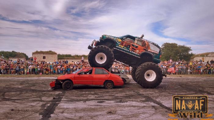 A betonpályához érve láttunk szinte repülő, táncoló Low Ridereket, füstöt okádó, aszfaltszaggató autókat, végül két óriási szörnyeteg érkezett, Big Foot és Kék Mammut, akik miszlikre taposták az erre a célra beáldozott roncsautókat. A csikorgó és hangosan eldurranó gumik is nagy ovációt váltottak ki, hát még az összeroppanó kasznik és szétrobbanó szélvédők.