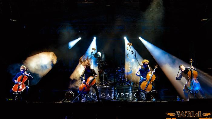 Magyar nyelvtudásukat, első Metallica feldolgozásuk történetét és néhány fiatalkori sztorit is megvillantottak a csellómágusok. Az Apocalyptica hamar belakta a színpadot és pillanatok alatt metálhipnózisba sodorta a közönséget. A finnek ezúttal Metallica feldolgozásokkal készült, de a ráadásban egy igazi motoros himnusszal, az AC/DC Thunderstruckkal is meglepték a közönséget.