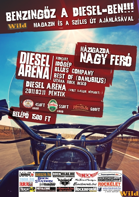 Március 11-én pénteken a Dieselben (vol E-klub a Népligetben) benzingőzös hangulatot árasztó buli részesei lehetünk. A Diesel Arénában fellép az Időgép, a Blues Company és a Best of (Danubius)! A három zenekar fellépése garantáltan elkergeti a téli hangulatot.