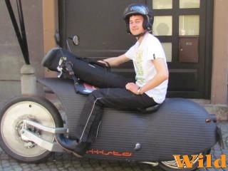 Az ausztriai cég, a Hammerschmid Maschinenbau futurisztikus, valljuk meg, kissé sokkoló kinézetű elektromos motorkerékpárral állt elő. A The Biiista fantázianevű gépen két éve dolgoznak, a külcsín alapján nehéz lenne bárhová is sorolni, marad tehát az extrém városi kategória. A műanyag borítás alumínium vázat takar, nagyjából 100km tehető meg egy kétórás töltéssel. Ez persze akár jelentősen rövidülhet, ha kihasználjuk a 100km/h körüli végsebességet. A felfüggesztés egyoldalas, ezzel kombinált a 14 lóerős agymotor, az első felfüggesztés is különleges külsőt kölcsönöz a gépnek függőcsapszeges megoldásával. A motor csak 140 kilót nyom - ez az elektromos motorok között is jónak mondható. (L)