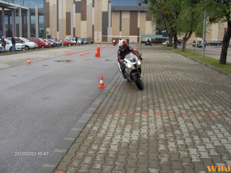 A motorosok a rövid bemelegítést követően két csoportban, kezdő illetve haladó képzésen vehettek részt, melyet a GY-M-S Megyei Rendőr-főkapitányság Közlekedési Baleset-megelőzési Bizottságának támogatásával két nagy tapasztalattal rendelkező motoros rendőr, Tabi Sándor és Dénes László vezetett. A 9:30-13:00-ig tartó tréning végén a motorosok bár fáradtan,az esőtől kívül, az izzadságtól pedig a motorosruhák alatt teljesen átázva, de hasznos élményekkel és tudással gazdagodva indulhattak haza. Az eső miatt pedig senki sem panaszkodott!