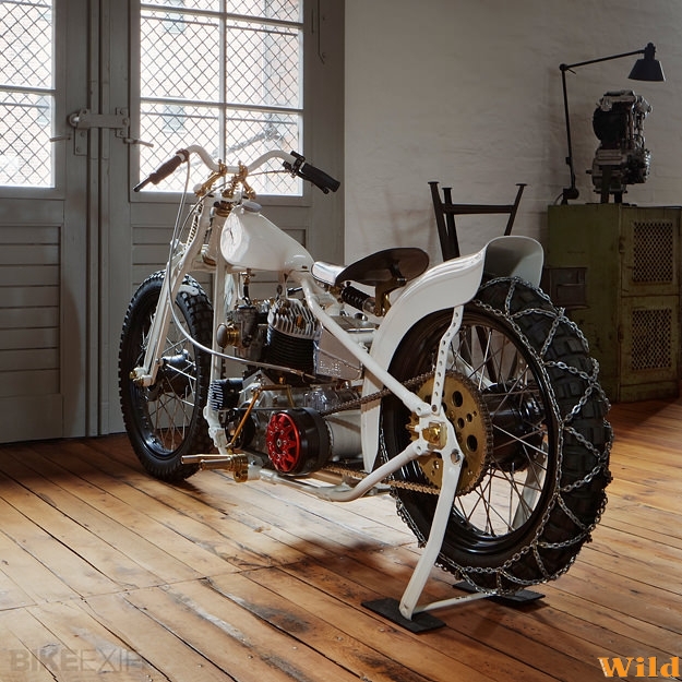 A '30-as évekbeli hillclimb motorok és a jégmotorok szerelmének gyümölcse Uwe versenyzői múltjából ered. A blokk összetétele elég vegyes, 1946-os U model az alap,1936-os VLH hengerekkel, amik 80 köbinchre növelték a hengerűrtartalmat, a hengerfejek pedig '48-as ULH tipusé a jobb hűtés miatt. Baker 6 sebességes váltó, Yamaha TY 80 tank, és Beringer kerékagyak képviselik a modern kort.